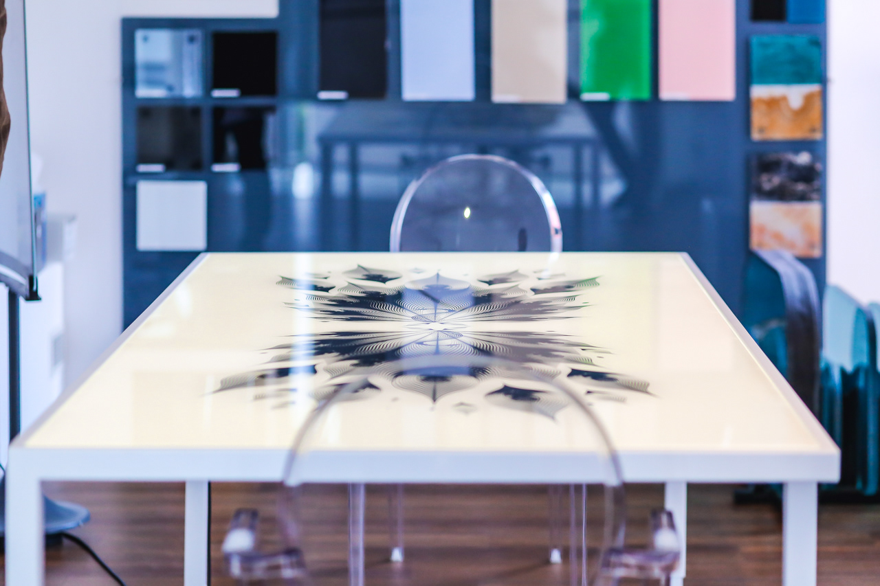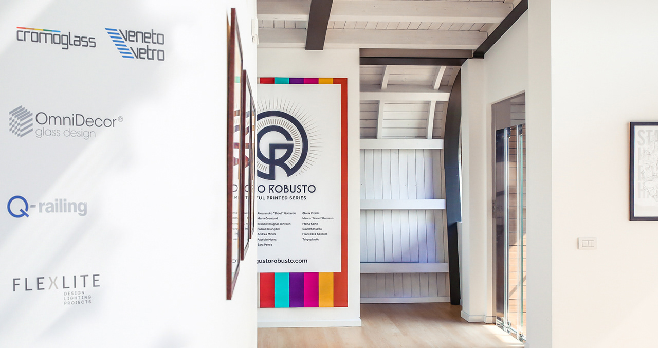 Gusto Robusto signs a partnership with Cromoglass to print vectorial art on glass in huge dimension or for limited edition furniture design.