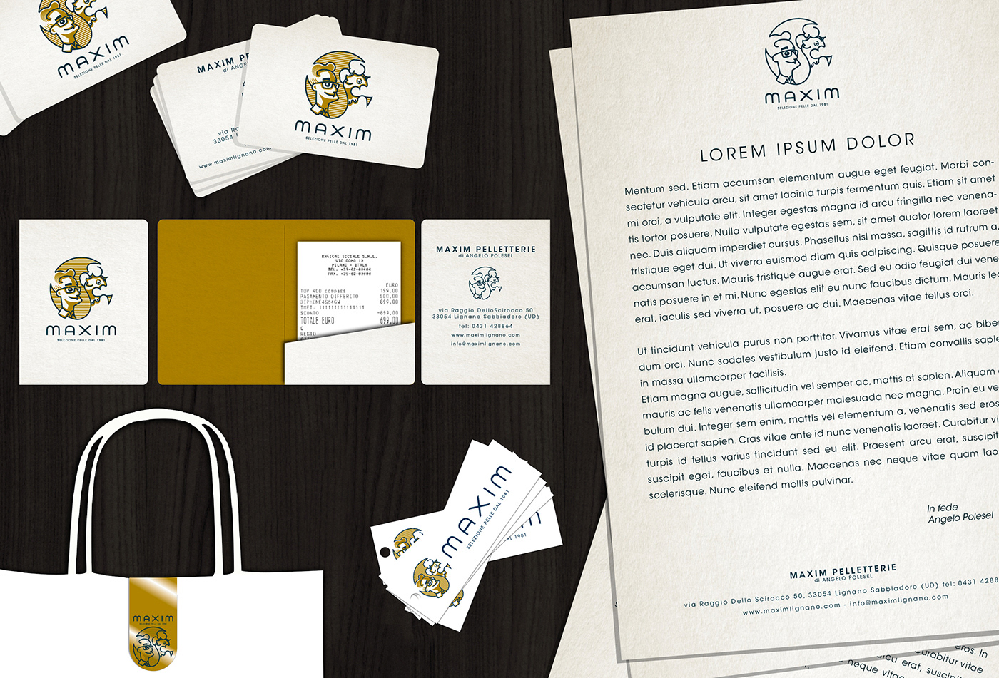 This is the corporate identity made for Maxim. It's a historical shop in Lignano, Italy. Here Petra and Angelo work as curators by proposing a selection of bags and leather accessories included both big brands and small artisans.