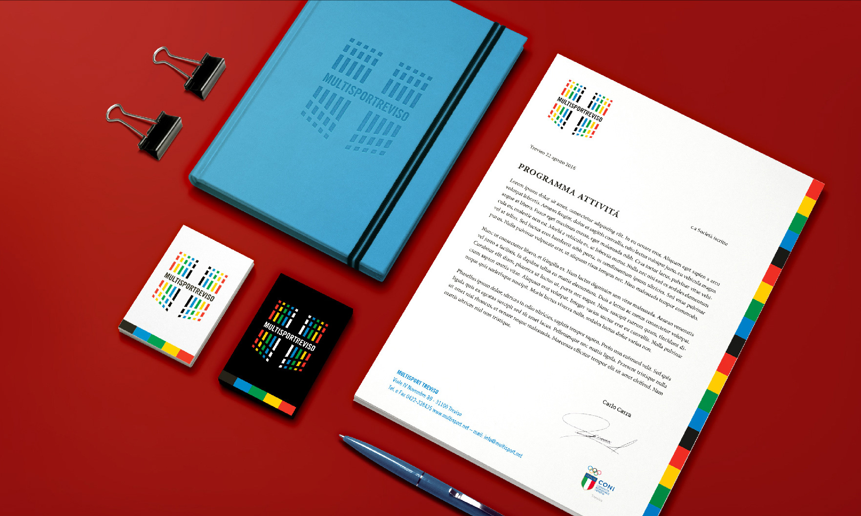 Multisport is a sport association in Treviso. It coordinates the sports activities in the area. The logo created by Manifactory represents the fusion between Olympic flag colors and Treviso emblem.
