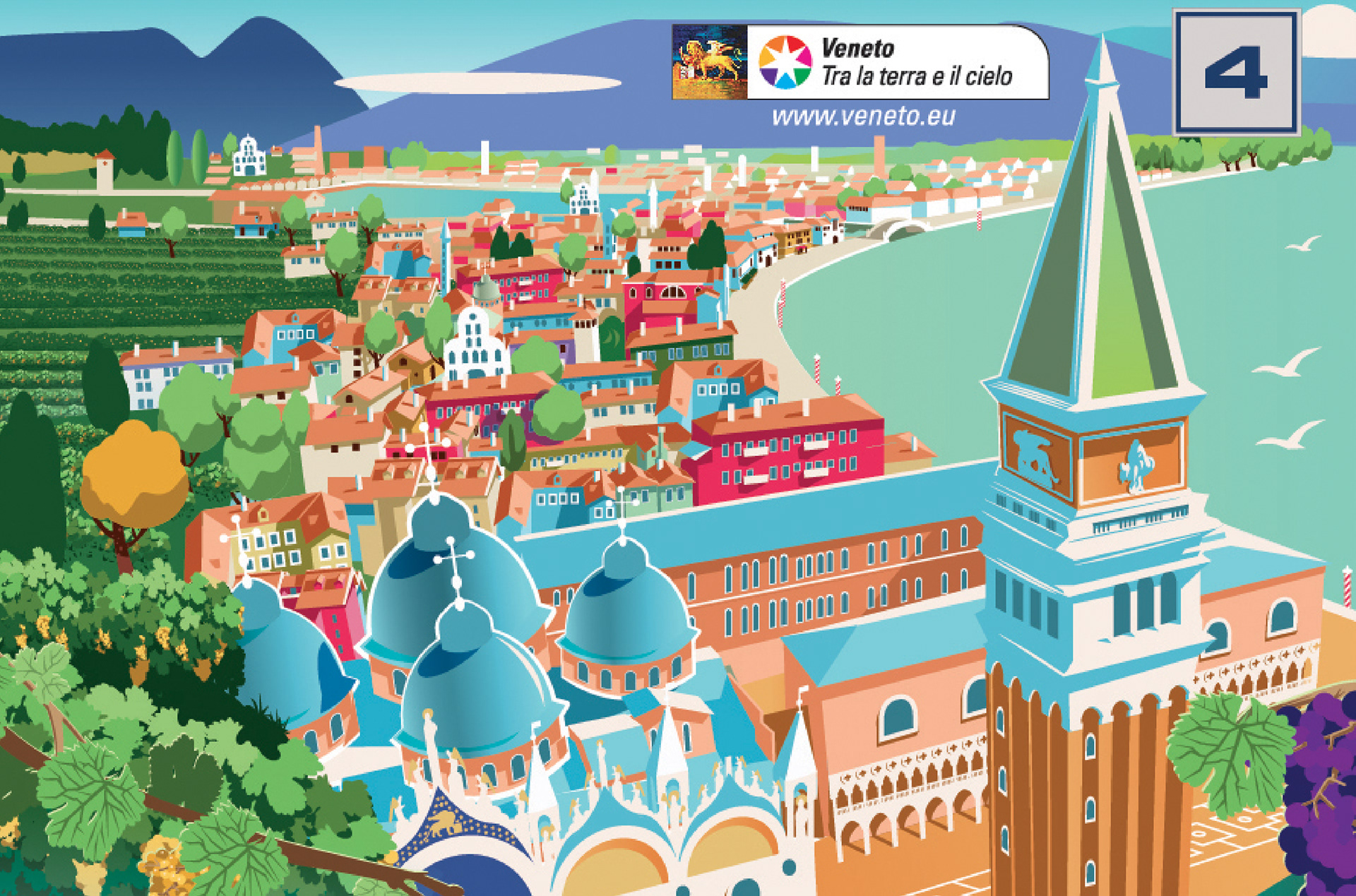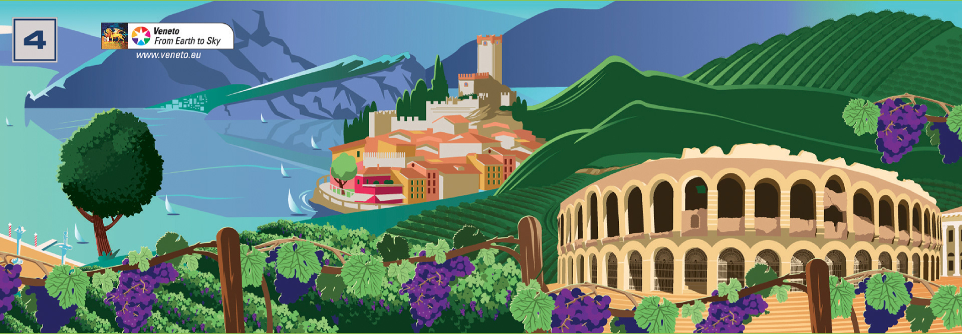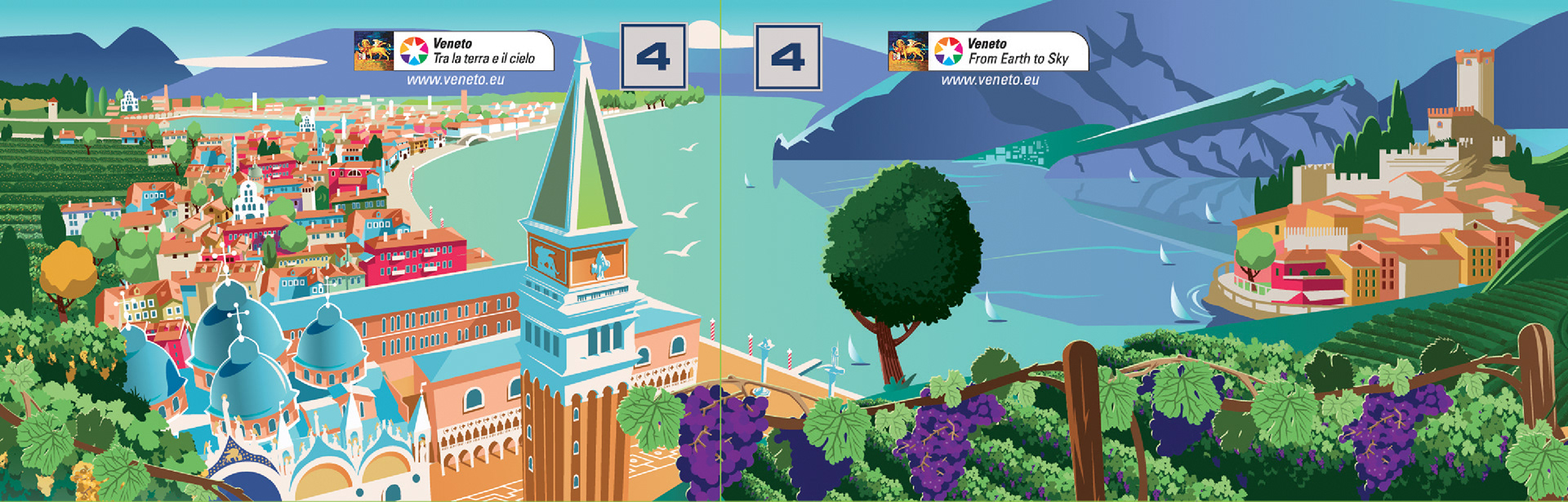 Thanks to this technique Sossella David could had drawn the illustration that winds for 1800mq of the pavilion length. Once again the beauty of the Veneto Region is the protagonist.