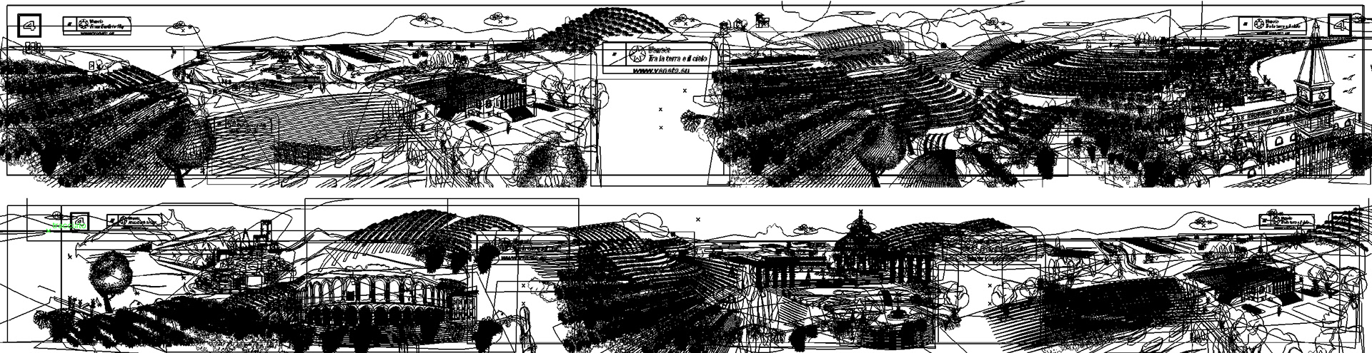 The vector drawing technique has proved particularly congenial because of the need to characterize the large surface area -1800mq - As the matter of fact a vectorial illustration allows producing infinitely large printable images with high definition.